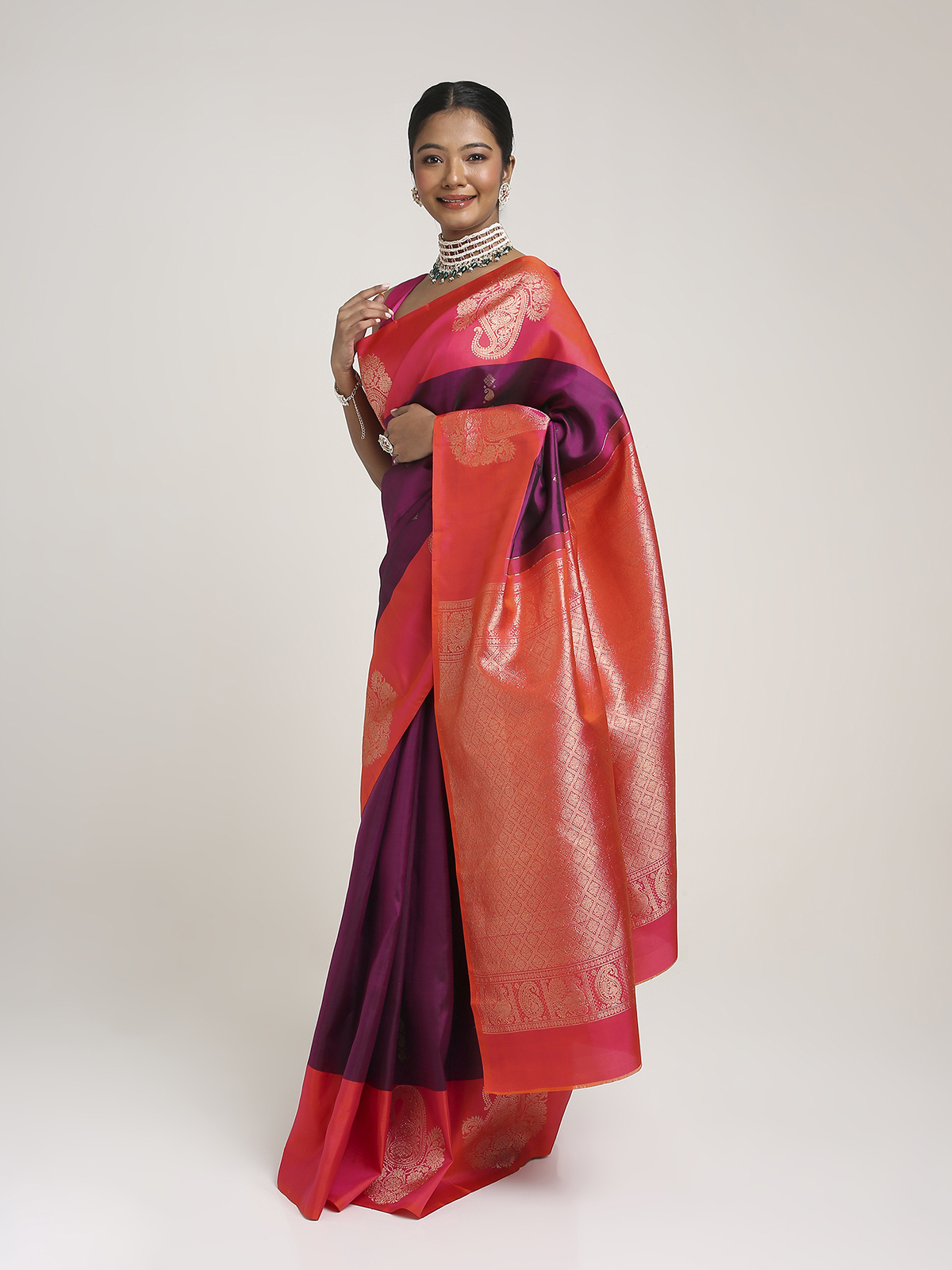 This Kanjivaram saree is designed for effortless festive dressing with a strong traditional soul. The weave carries the richness and structure that make Kanjivaram sarees enduring favourites for weddings, poojas, and celebration wear. Elegant yet versatile, it gives you a graceful silhouette while retaining a classic South Indian luxury feel. Style it with temple jewellery or a statement blouse for a look that feels rooted, regal, and beautifully occasion-ready.
