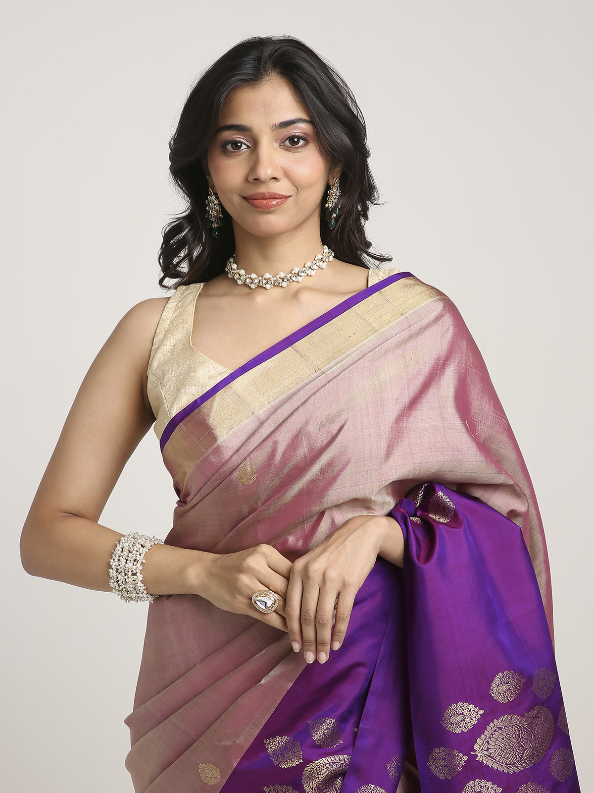 A beautifully poised Kanjivaram saree that speaks of tradition, celebration, and enduring sophistication. Designed for women who appreciate heritage with substance, this piece is ideal for wedding functions, festive gatherings, and memorable family occasions. Its rich aesthetic makes it a dependable statement drape for years to come. Elegant without being overwhelming, this saree is a refined addition to any premium ethnic collection and a lovely expression of timeless Indian craftsmanship.