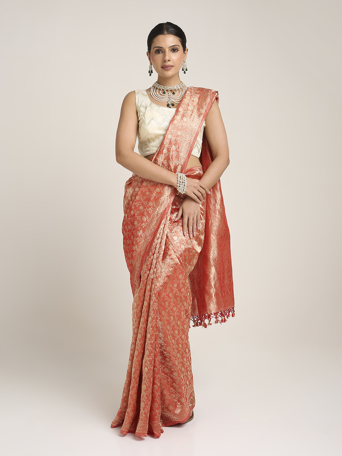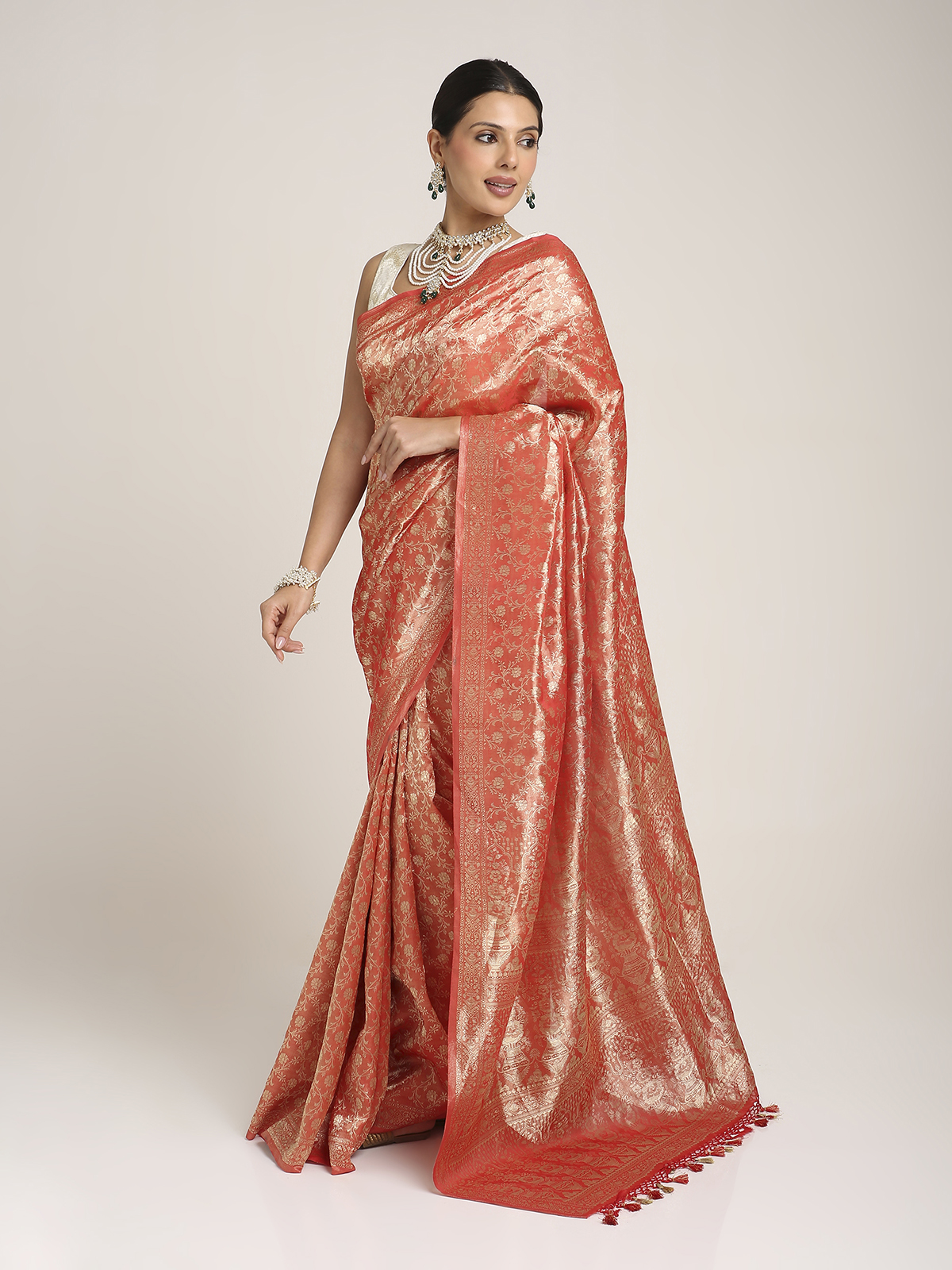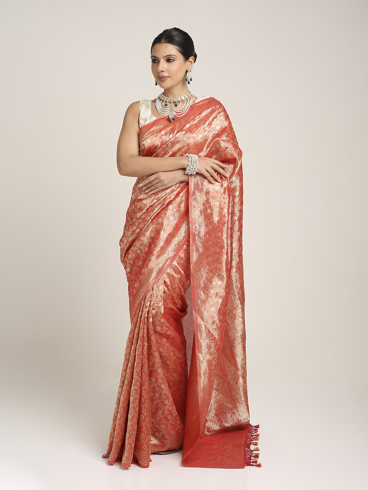 Light-catching and elegant, this Katan Tissue Silk saree is designed for women who love festive glamour with sophistication. Its luminous appeal makes it ideal for receptions, festive evenings, and celebratory occasions where you want your drape to feel graceful yet distinctive. It pairs beautifully with fine jewellery and polished styling, offering a luxurious presence without appearing heavy. A wonderful choice for modern occasion wear with classic Indian richness at its core.