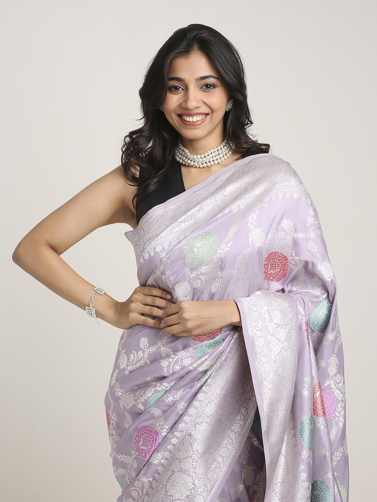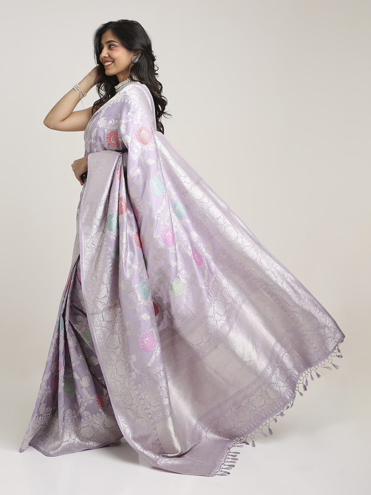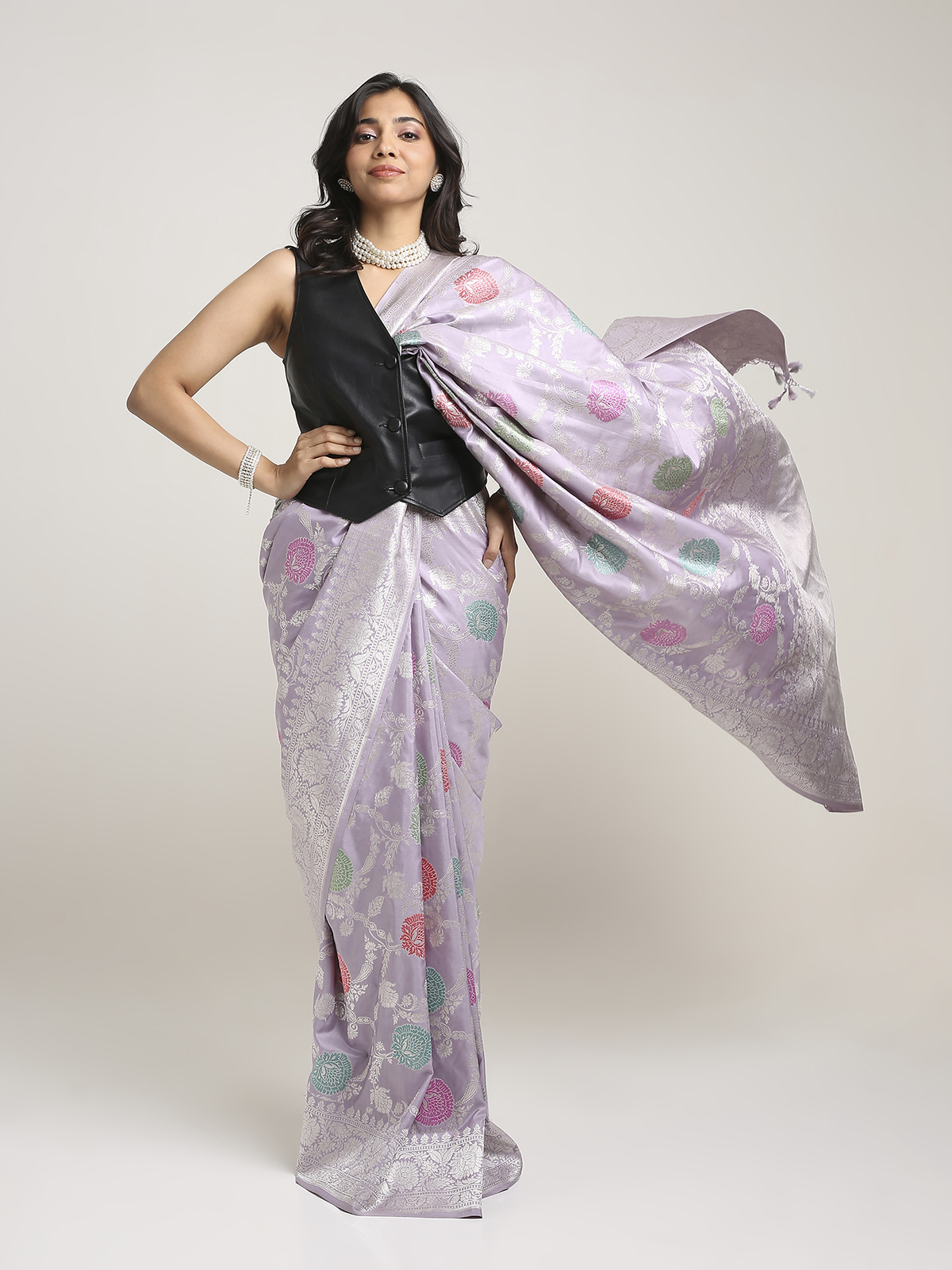 A grand saree created for unforgettable occasions, this Meena Jungla piece reflects the richness of traditional artistry and statement craftsmanship. It is a magnificent choice for weddings, bridal trousseaus, festive galas, and milestone celebrations where every detail matters. The luxurious character of this saree makes it ideal for women who appreciate rare-looking drapes with collector appeal. A timeless investment that carries presence, prestige, and unmistakable festive grandeur.