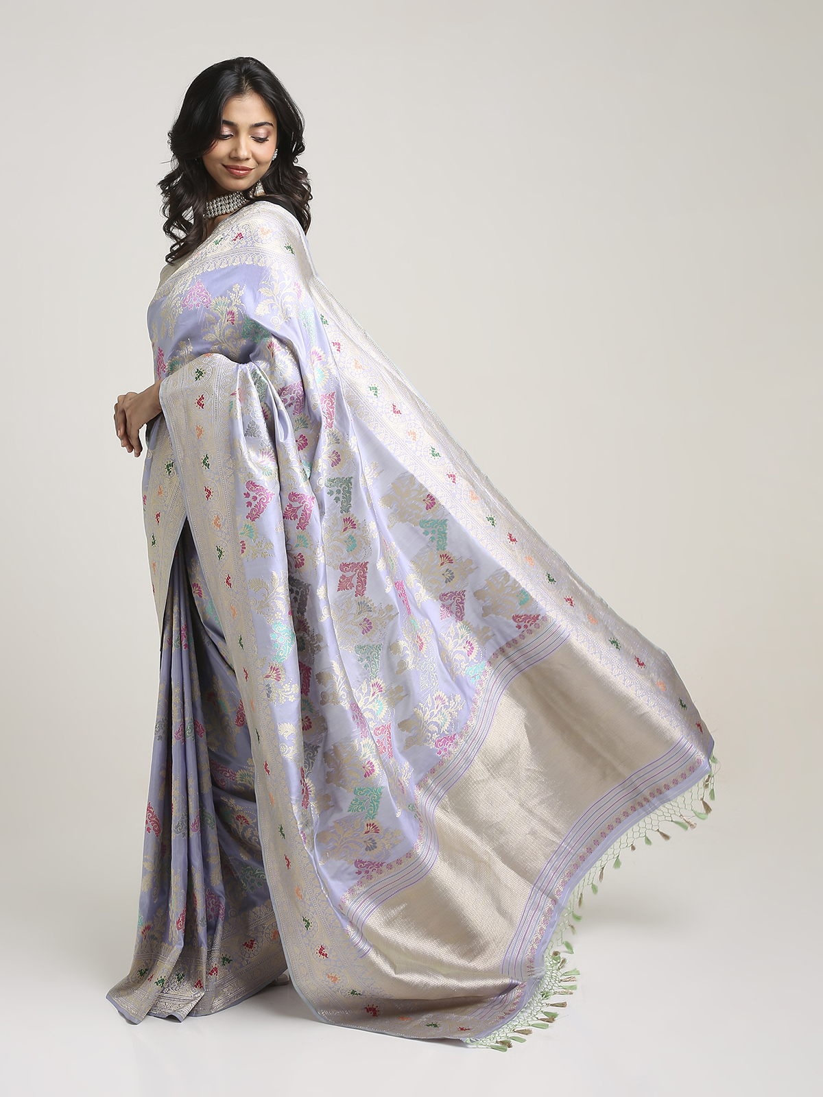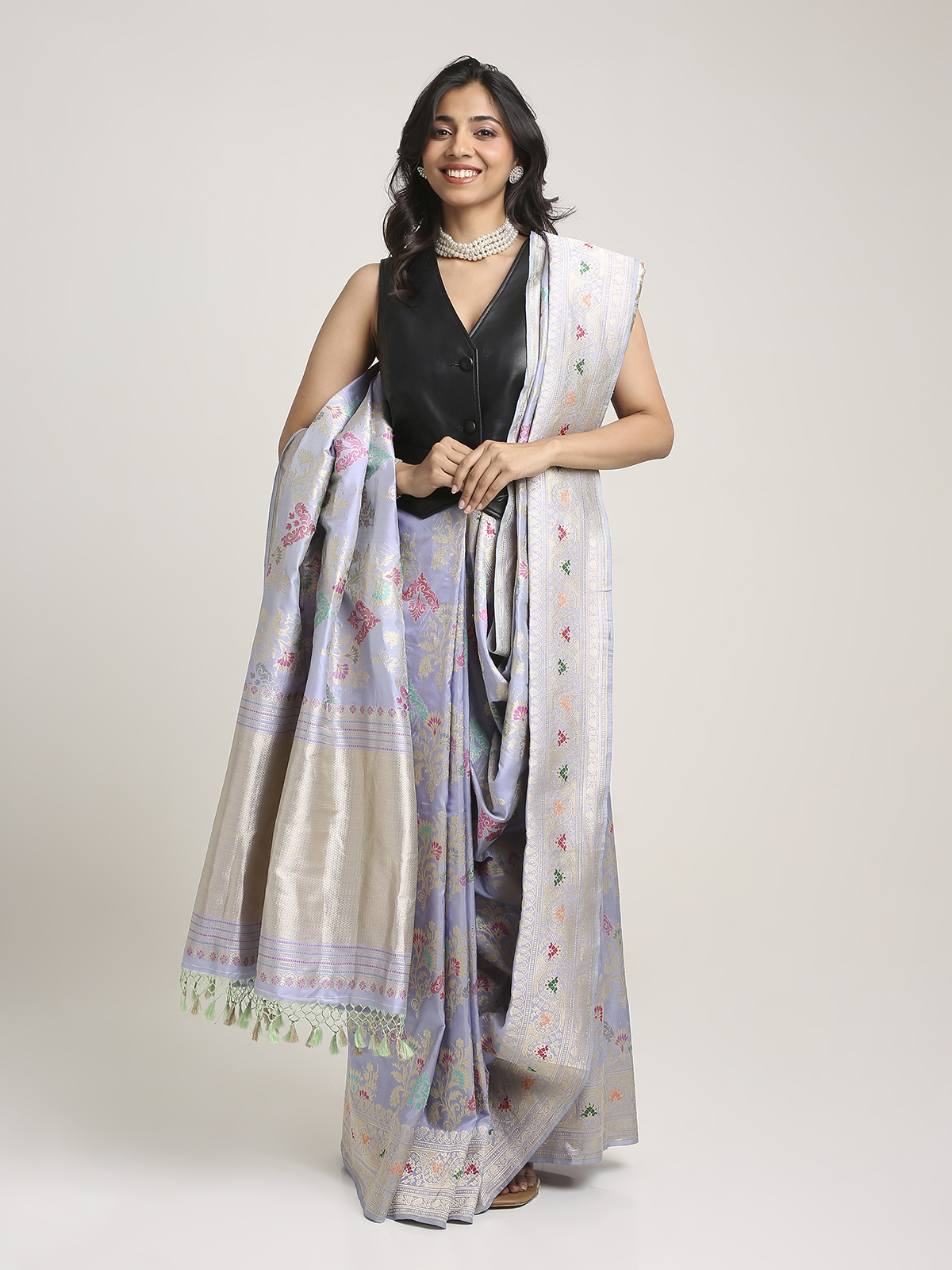 Rich, regal, and deeply expressive, this Meena Jungla saree is designed for women who want their festive wardrobe to feel extraordinary. It has the aura of a special-occasion heirloom, suitable for weddings, celebratory rituals, and high-value gifting. Its luxurious feel pairs beautifully with traditional styling and statement jewellery. For those who admire sarees that speak of legacy, artistry, and elevated taste, this piece is a truly compelling choice.