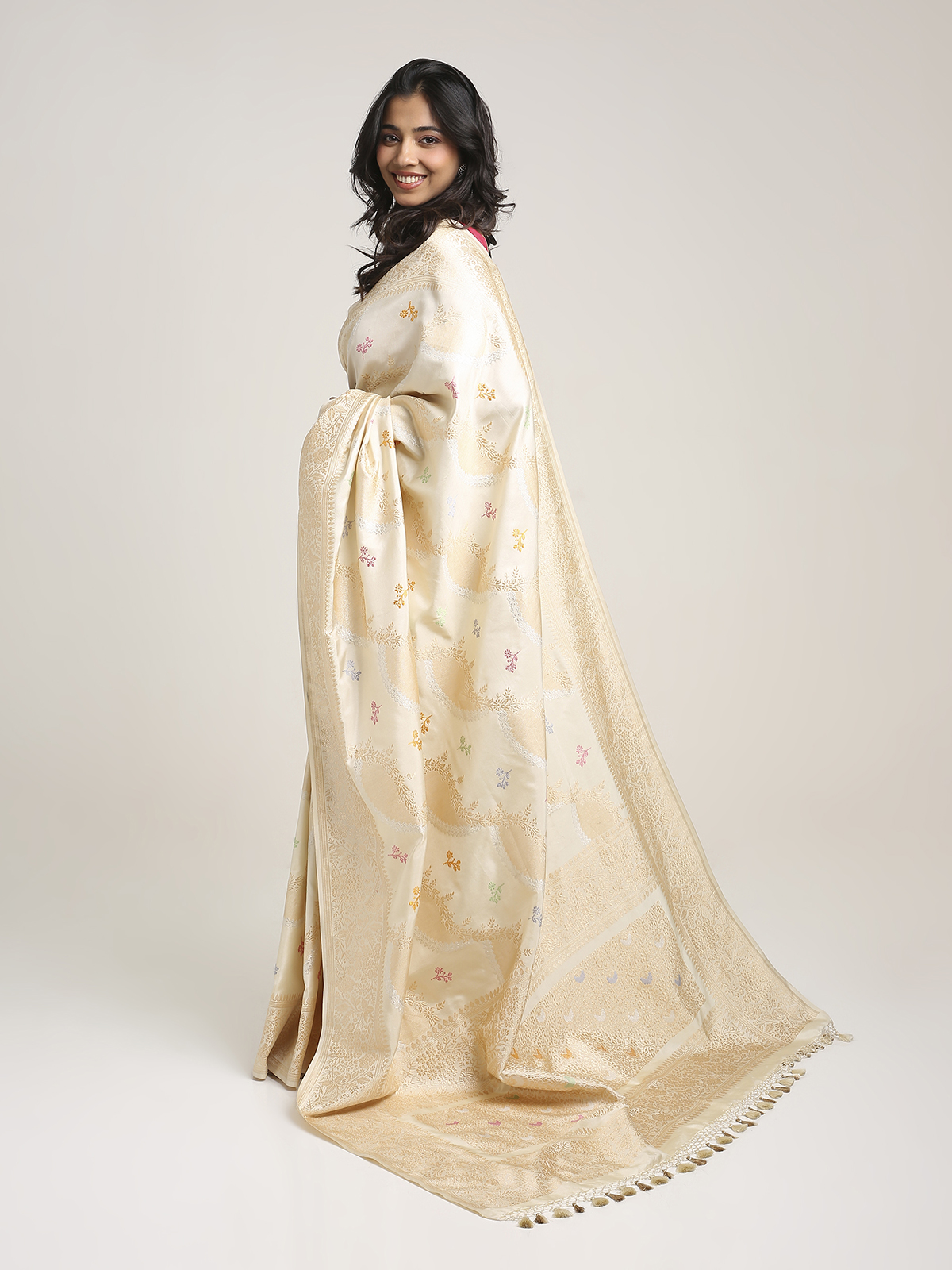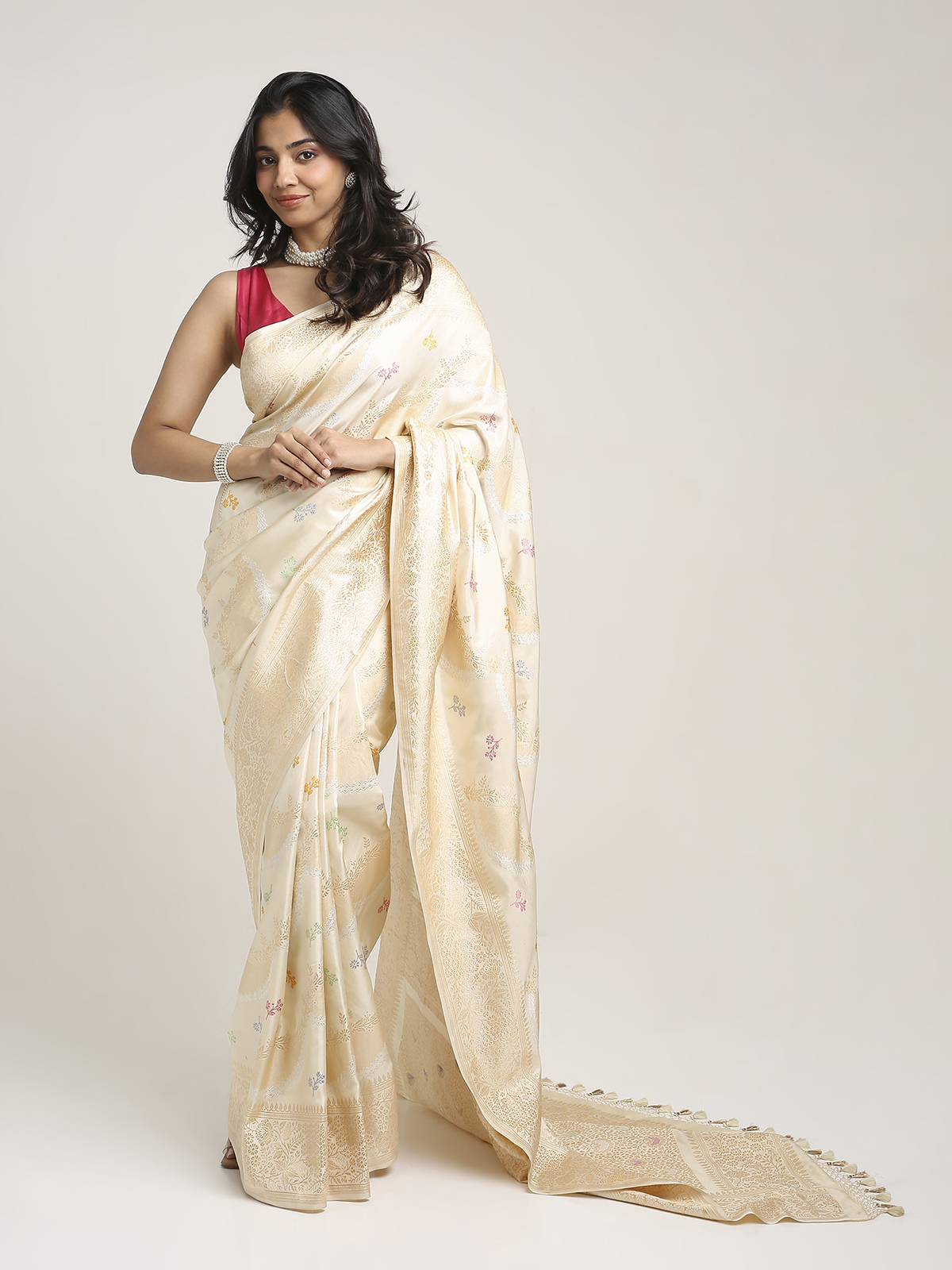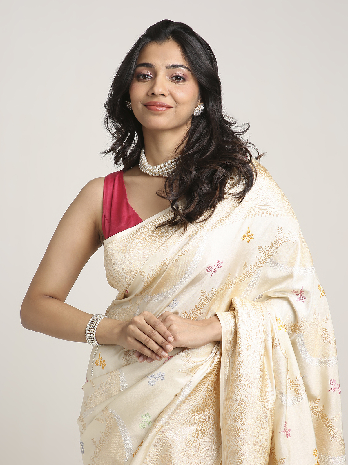 This Meena Jungla saree brings drama, refinement, and artisanal richness into one unforgettable drape. Ideal for brides, collectors, and women who love premium festive wear, it makes an effortless statement at grand occasions. The saree carries a sense of prestige and timelessness that goes beyond seasonal trends. It is a piece to cherish, style, and revisit over years of celebrations, making it a meaningful addition to any luxury ethnic wardrobe.